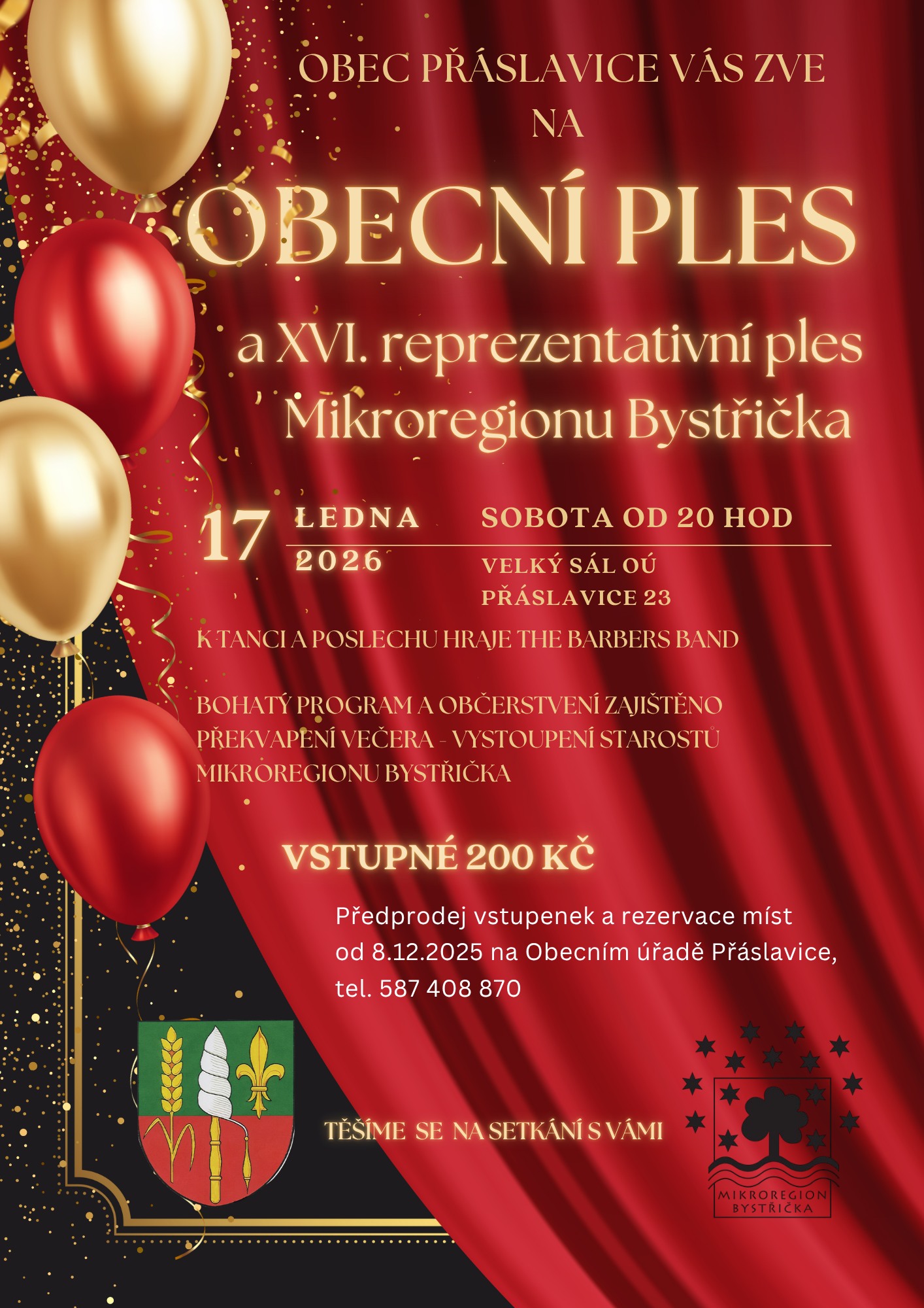 17.1.2026 - Obecní ples Přáslavice a XVI. reprezentativní ples Mikroregionu Bystřička