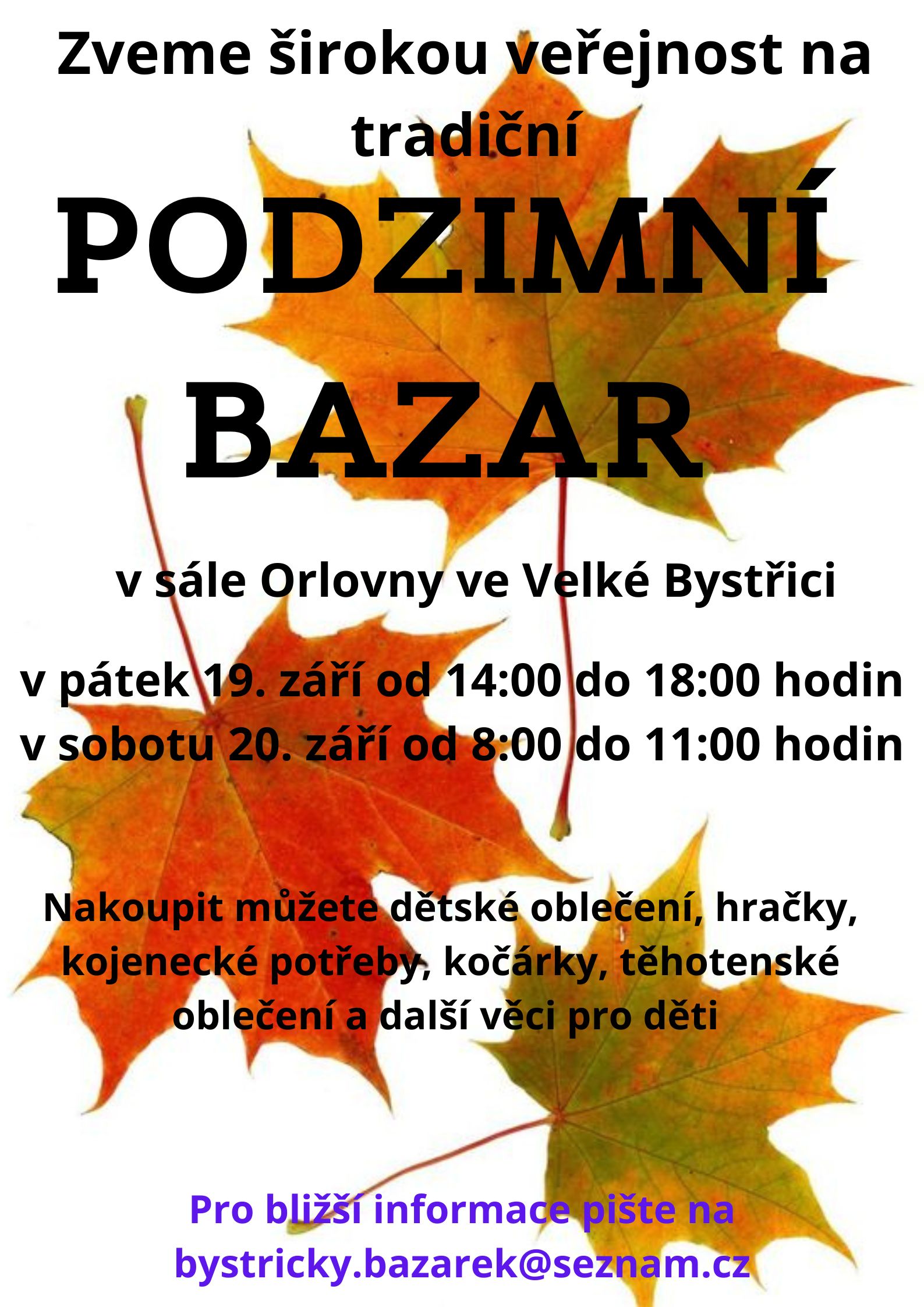 19.-20.9. - Podzimní bazar v sále Orlovny ve Velké Bystřici