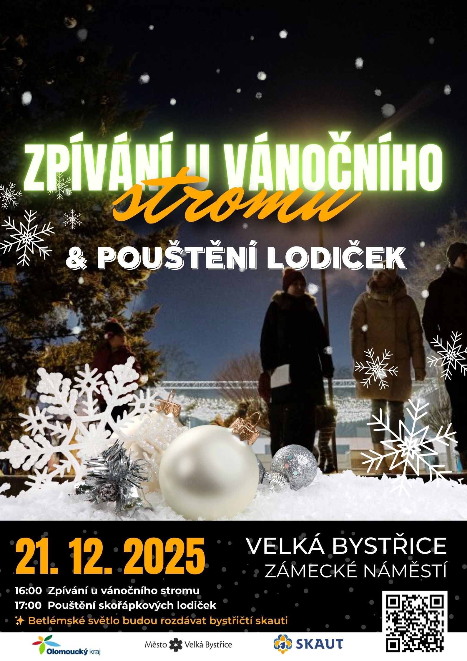 21.12. - Velká Bystřice - zpívání u vánočního stromu a pouštění lodiček