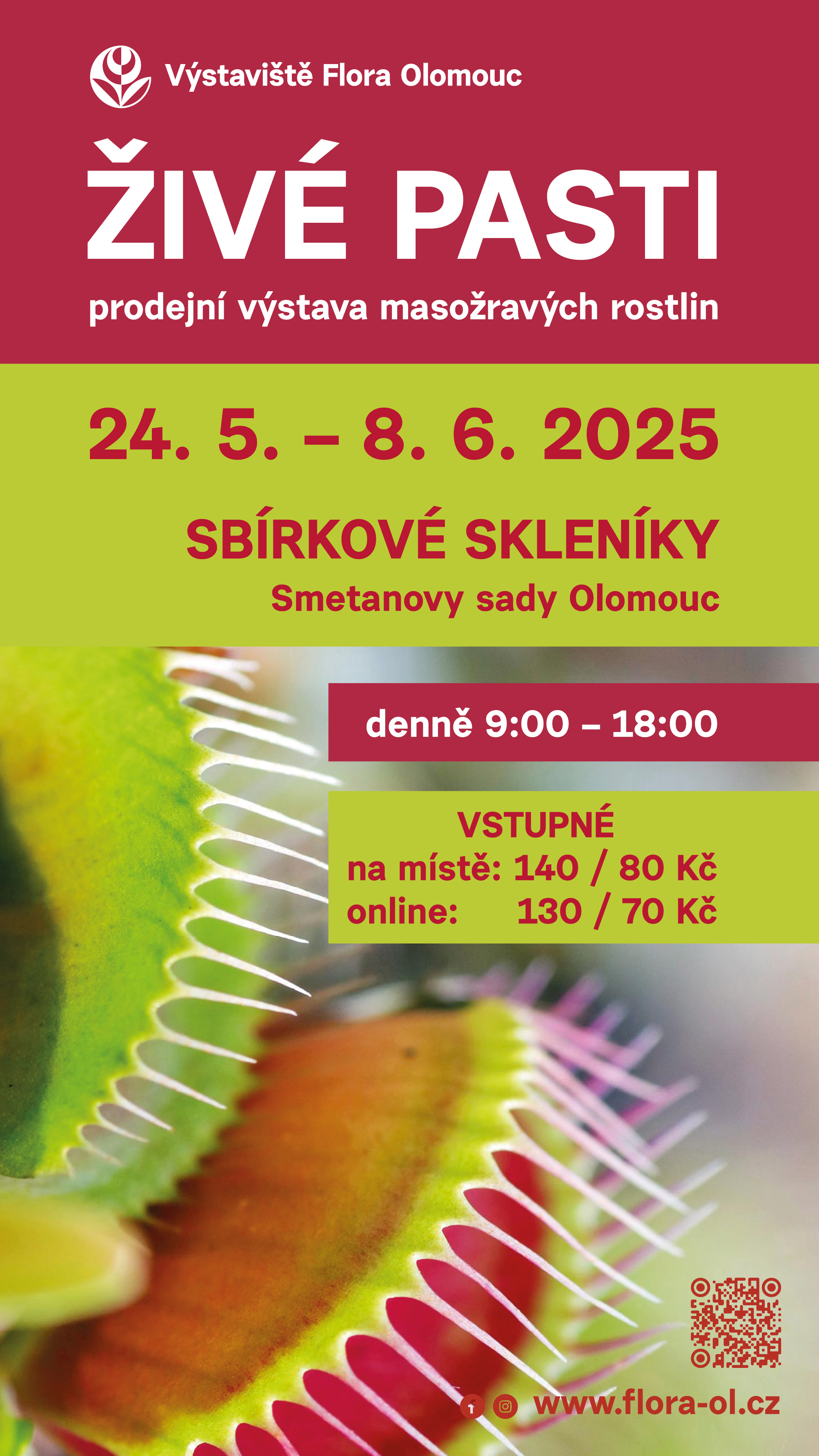 Ve Sbírkových sklenících ve Smetanových sadech se ve dnech od 24.5. do 8.6.2025 bude konat prodejní výstava orchideí a tropických rostlin s názvem Živé pasti.