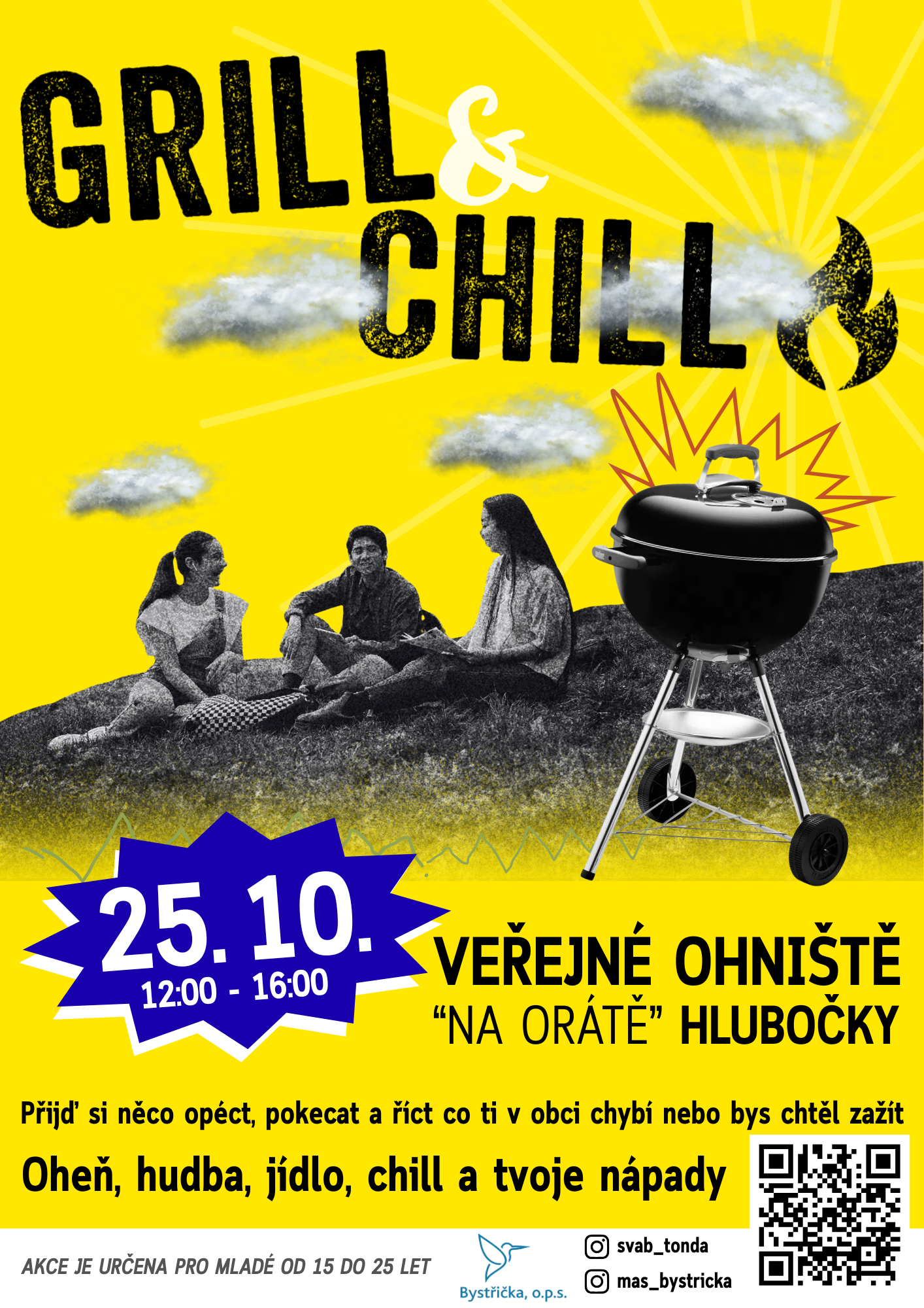25.10.2025 komunitní akce Grill & Chill Hlubočky od 12:00 do 16:00 na veřejném grilovišti „Na Orátě“ v Hlubočkách
