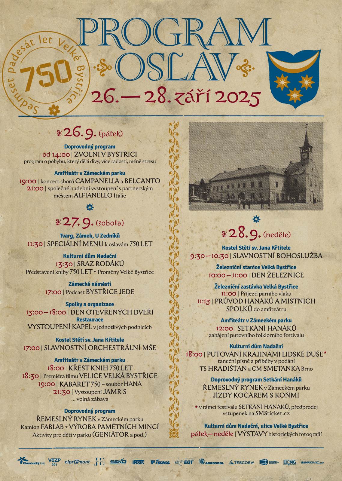 V příloze naleznete program oslav 750-ti let Velké Bystřice.