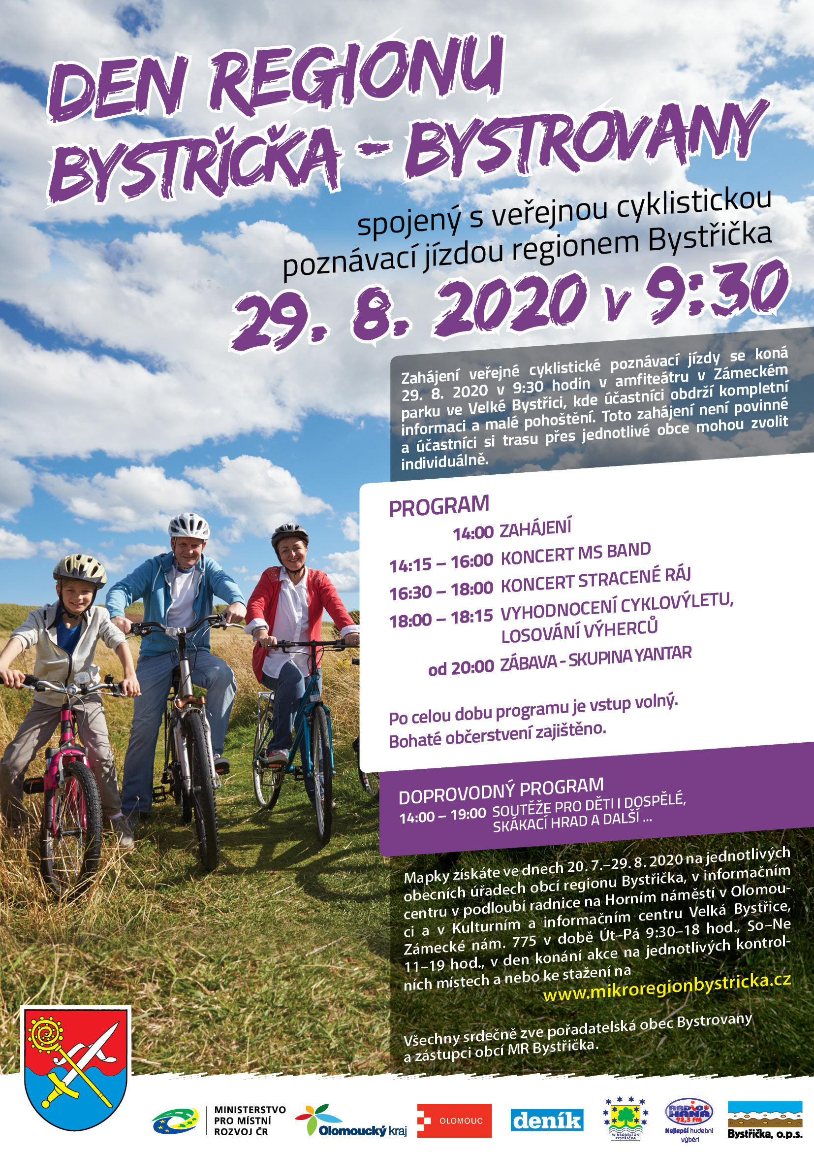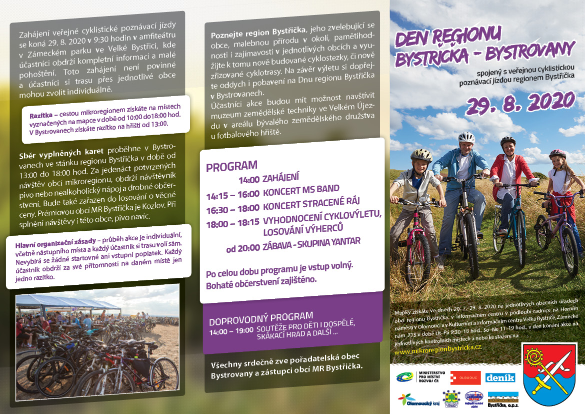 29.8.2020 se koná Den mikroregionu Bystřička spojený s cyklistickou poznávací jízdou regionu Bystřička
