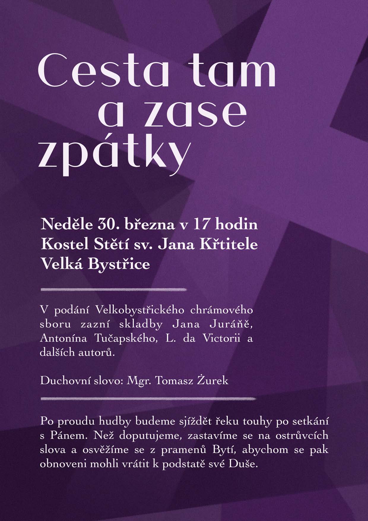 V neděli 30. března v 17 hodin proběhne koncert Velkobystřického chrámového sboru s průvodním slovem Mgr. Tomasze Źurka.