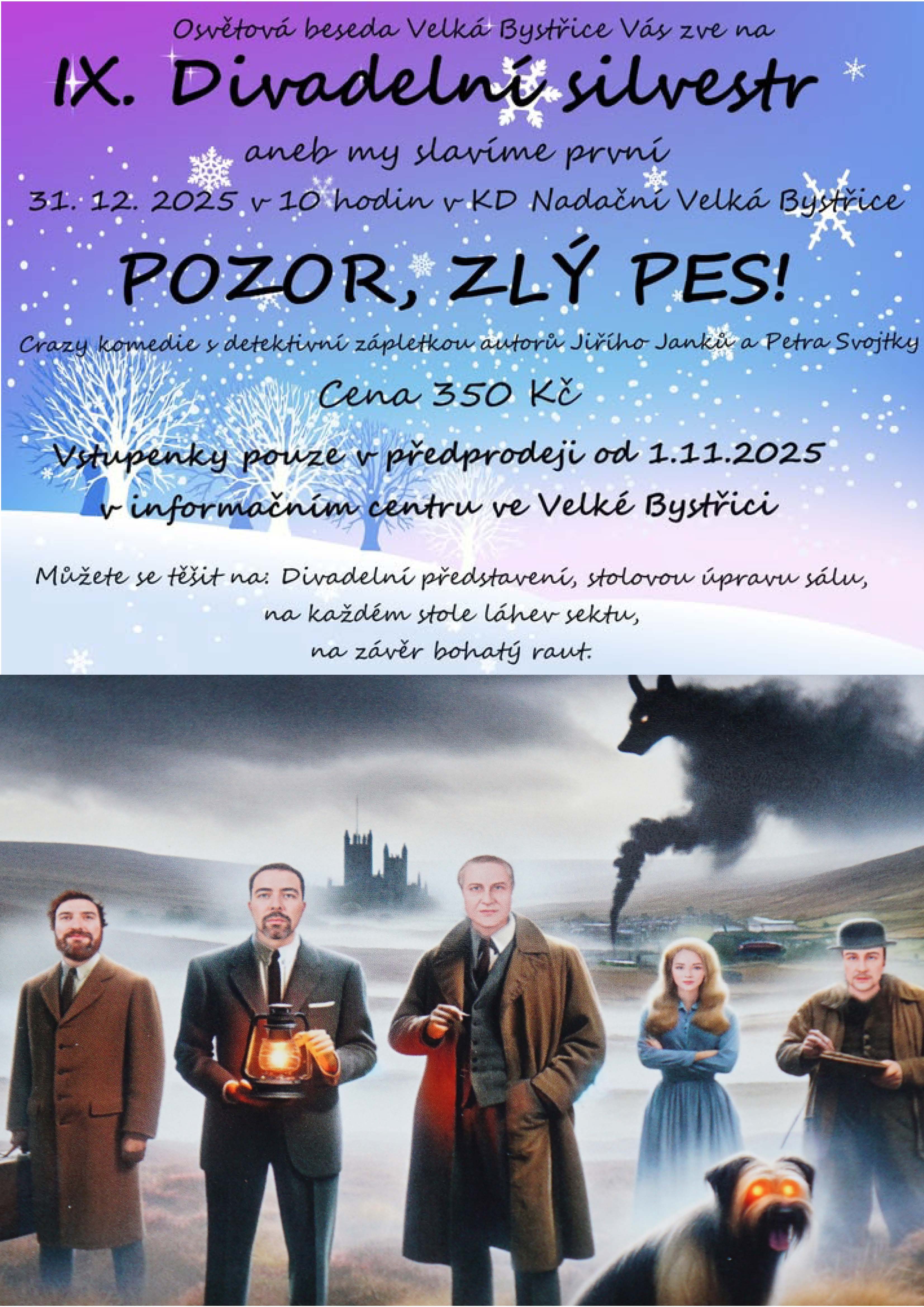 31.12. - IX. divadelní silvestr - crazy komedie Pozor, zlý pes (Osvětová beseda Velká Bystřice)